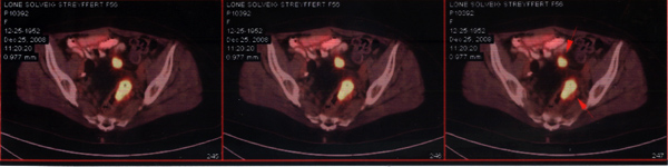 Sara小姐患卵巢癌,并发直肠转移癌、后腹膜腔淋巴结转移。PET-CT显示腹腔内多处有肿瘤活性。在新西兰共有5个医生为她治病,其中两位来自美国。由于以前她已接受卵巢切除,并做过全疗程化疗,因此进一步治疗遇到困难。2013年6月23日,Sara小姐来到广州中医药大学金沙洲医院。她接受了综合治疗:手术—>切除直肠肿瘤—>对残存肿瘤作WB-1无创全身热疗—>化疗。2013年9月28日出院。