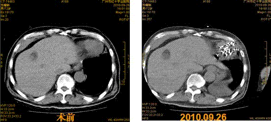 2013年8月底,经朋友介绍慕名来到广州中医药大学金沙洲医院肿瘤中心接受WB-1全身热疗(肿瘤深部全身热疗),根据患者的情况,专家团会诊后采用全身热疗结合P53基因治疗,1个疗程后,肺部肿瘤缩小42.7%,疼痛、咳嗽、腹水等症状全面消失,白细胞上升到正常水平。近期回访,患者身体状况良好,达到带瘤生存。