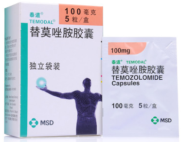 替莫唑胺是一种治疗脑胶质瘤的新药,原料药为白色或浅棕色/淡粉色粉末,相对分子质量为194.15。pH7时易分解,因此可口服给药。1998年该药在欧洲上市,1999年美国食品药品管理局(FDA)准其在美国上市用于恶性胶质瘤的化疗,2000年以后中国逐步有临床应用的报道。国内目前有三种上市药品,一是天士力集团的,商品名“蒂清”;一是默沙东的,商品名为“泰道”;一是北京双鹭药业的,商品名“交宁”;这三种药成分均为替莫唑胺。